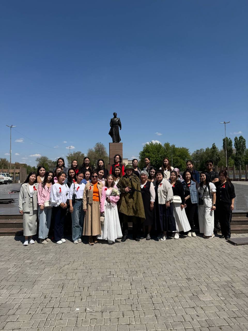 – «Ел қорғаған ерге мың тағзым» шарасында қатысушылар Жеңіс саябағында Бауыржан Момышұлы ескерткішіне гүл шоқтарын қойып, «Даңқ лентасын» тақты;