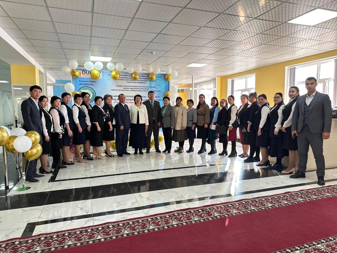 В ходе регионального практического семинара в целях совместного выполнения учебно-методической работы по изучению, изучению, распространению и пропаганде инновационной педагогической практики на основе коллаборации ВУЗ-ШКОЛА был подписан Меморандум о сотрудничестве между кафедрой «Педагогика» Таразского регионального университета им.М. Х. Дулати и Коктальской средней школой.