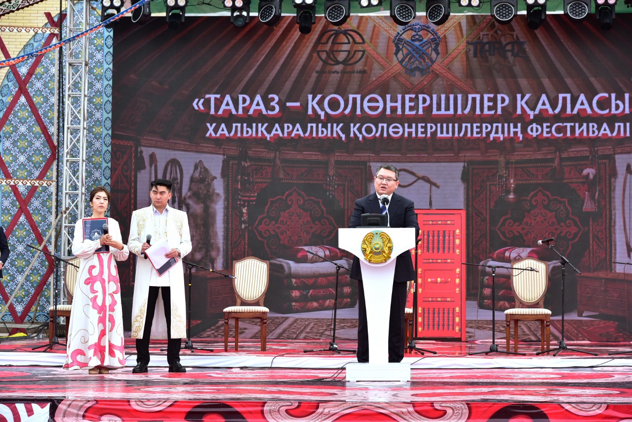 Облыс әкімі Ербол Қарашөкеев сөз алып,  Тараз қаласының көне өркениет орталығы ретіндегі орны мен қолөнердің мәдени-экономикалық маңызын атап өтті. Сонымен қатар, халықаралық деңгейдегі тәжірибе алмасу алаңын кеңейту, жас шеберлерді қолдау және қолөнер саласына инвестиция тарту бағытындағы жоспарлар таныстырылды. Өңір басшысы бірқатар шеберлерді марапаттап, жұмыстарына сәттілік тіледі.