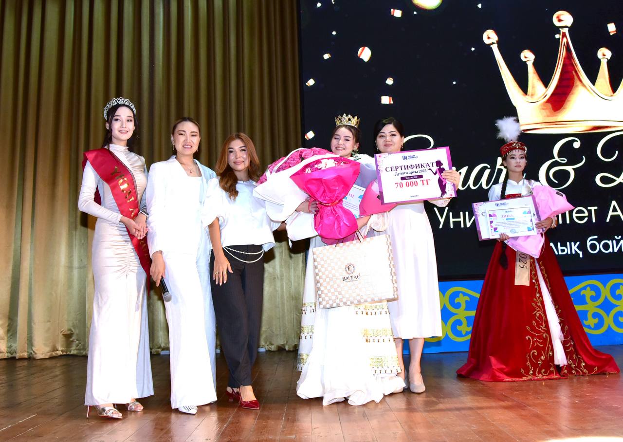 Университет қабырғасында «SMART & BEAUTIFUL: УНИВЕРСИТЕТ АРУЫ – 2025» атты сұлулық байқауы ұйымдастырылды. Бұл кеш сұлулық пен өнер, ақыл мен парасат тоғысқан ерекше сайысқа айналды.