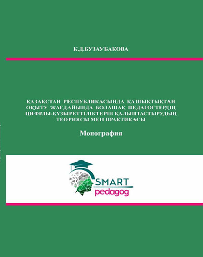 Монографияның атауы: «ЖАҢА ЖАҒДАЙДАҒЫ ҚАЗАҚСТАНДА ПЕДАГОГИКАЛЫҚ БІЛІМ БЕРУ ЖҮЙЕСІН ЖЕТІЛДІРУ: ҚАЗАҚСТАН РЕСПУБЛИКАСЫНДА ҚАШЫҚТЫҚТАН ОҚЫТУДА БОЛАШАҚ ПЕДАГОГТЕРДІҢ ЦИФРЛЫ ҚҰЗЫРЕТТІЛІКТЕРІН ҚАЛЫПТАСТЫРУДЫҢ ТЕХНОЛОГИЯЛЫҚ-ӘДІСТЕМЕЛІК АСПЕКТІЛЕРІ»
